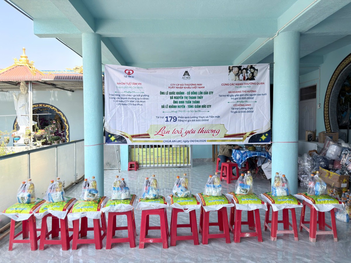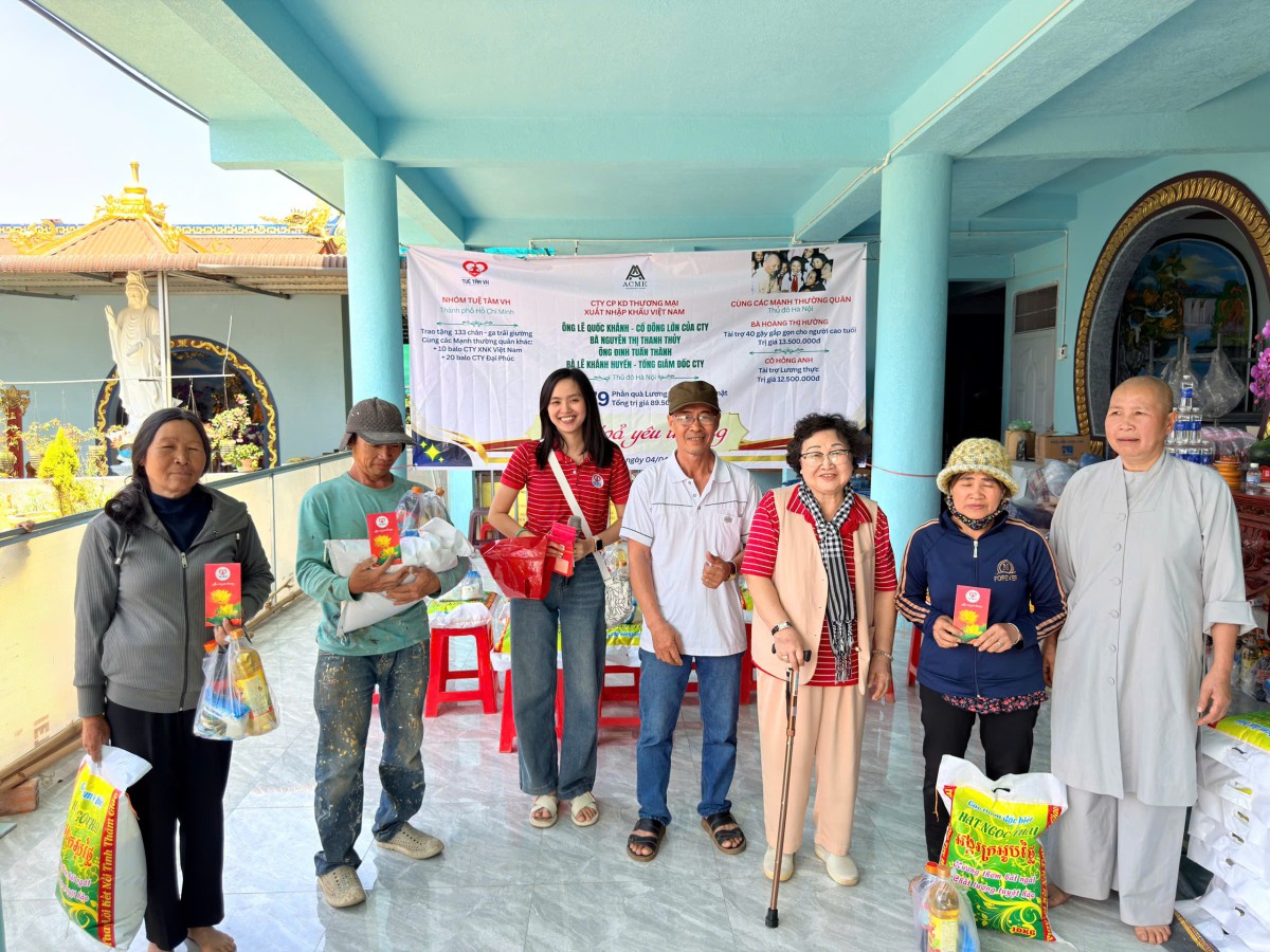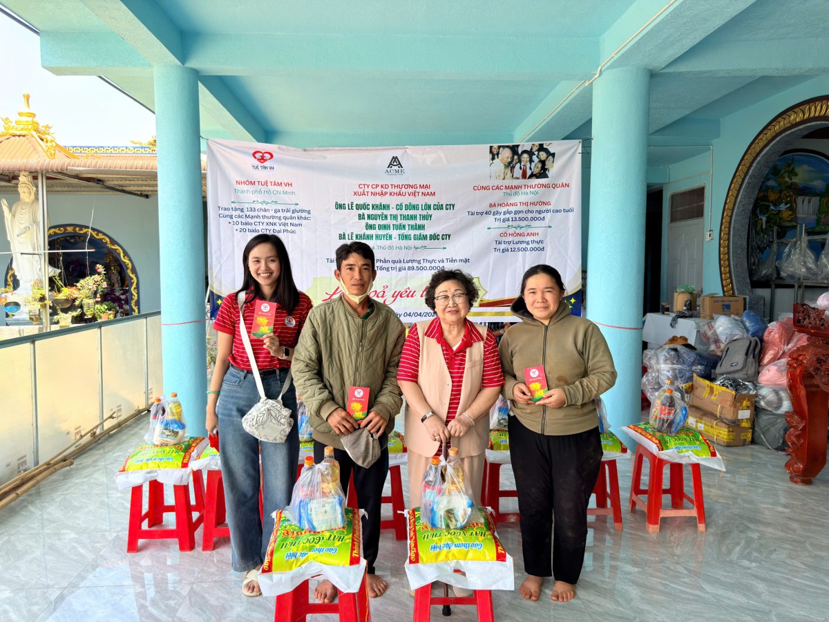 - Công ty CP KD Thương Mại XNK Việt Nam (ACME): Đại diện bởi ông Lê Quốc Khánh (Cổ đông lớn), bà Nguyễn Thị Thanh Thủy, ông Đinh Tuấn Thành và bà Lê Khánh Huyền (Tổng giám đốc) đã trực tiếp trao tặng 179 phần quà gồm nhu yếu phẩm và tiền mặt. Tổng giá trị tài trợ đạt 89.500.000đ.