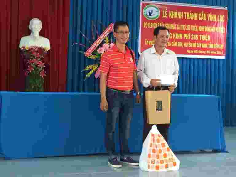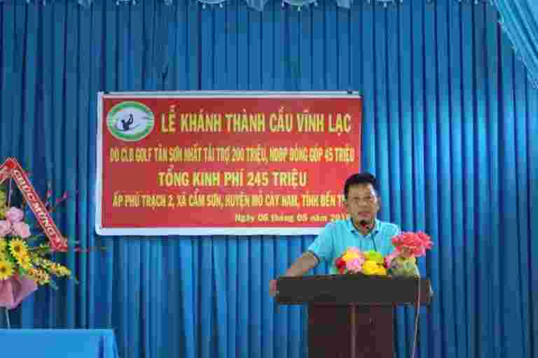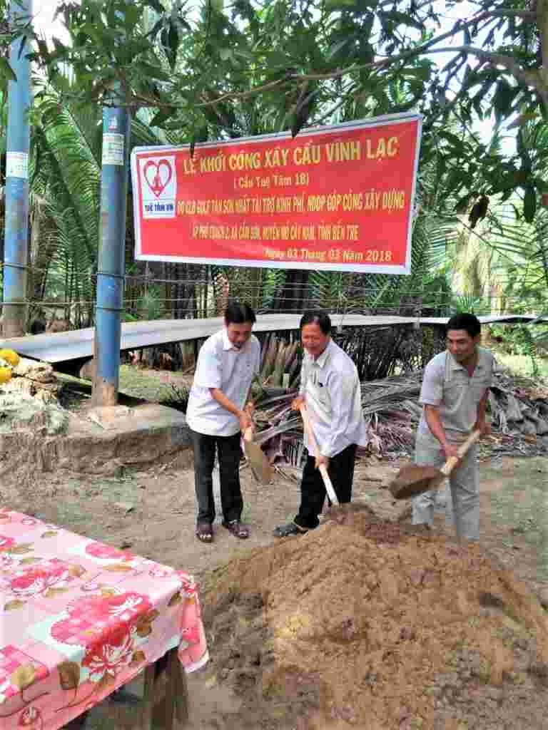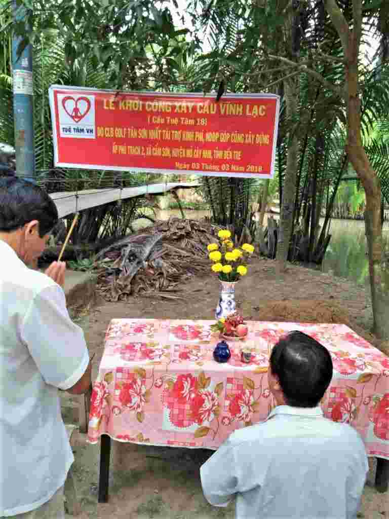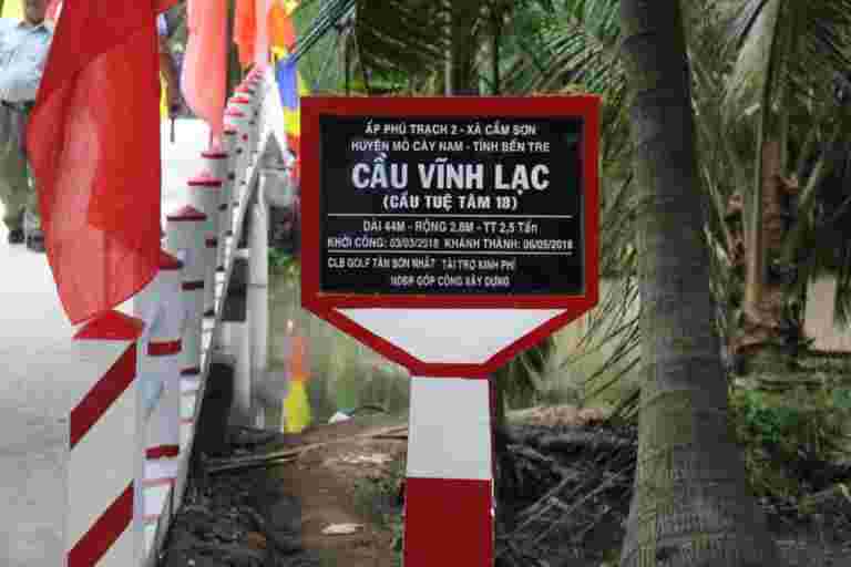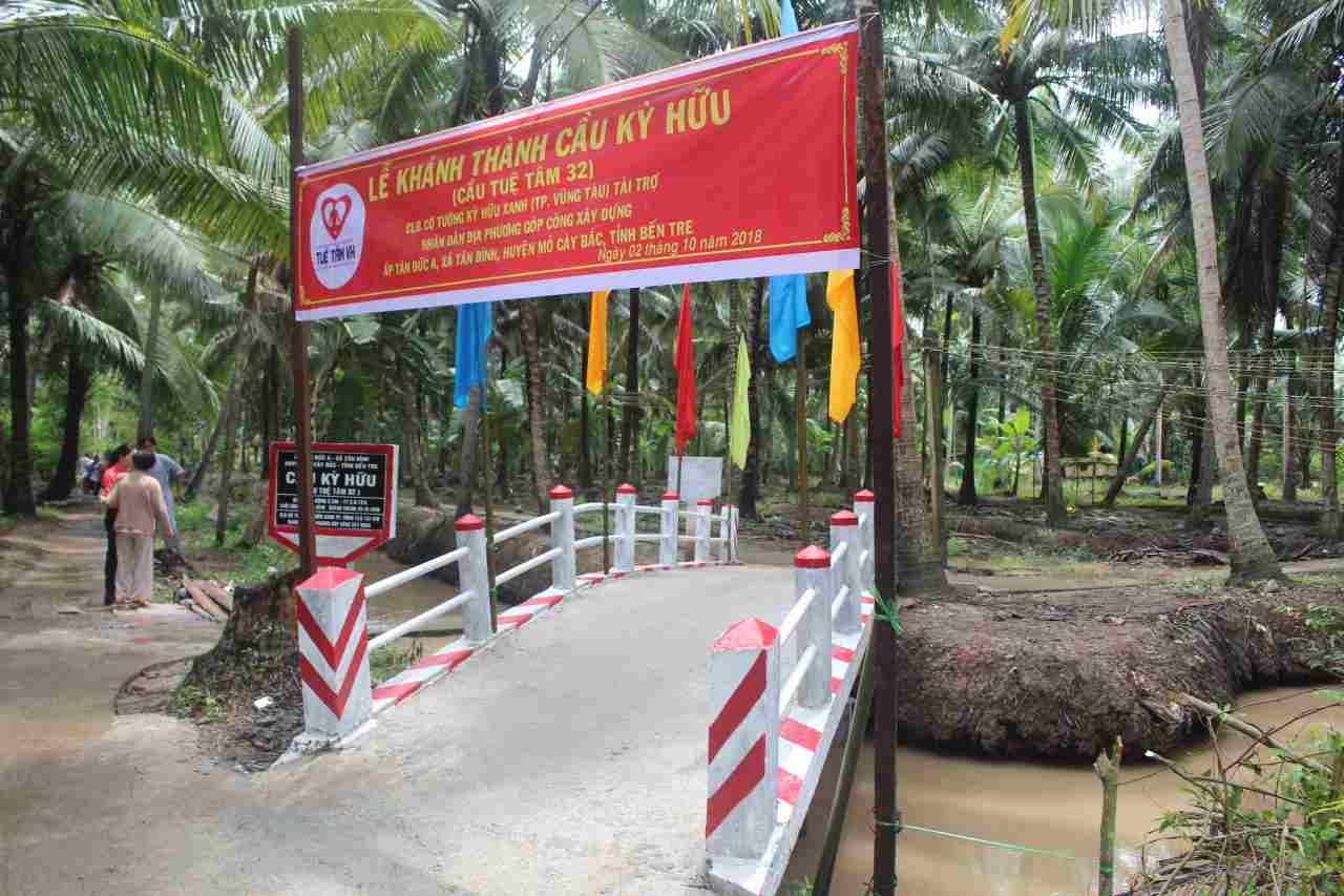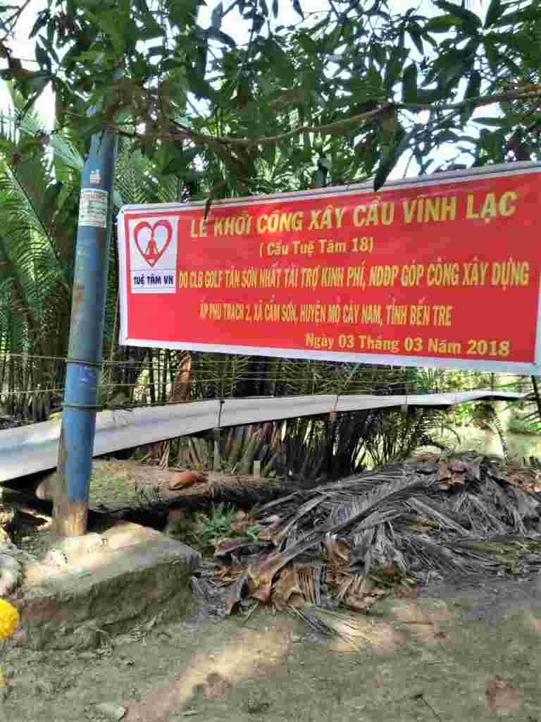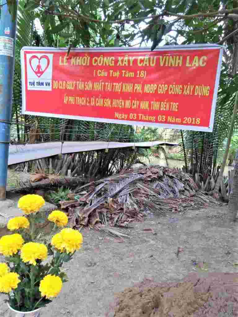 Từ sáng sớm Chủ nhật 06/5/2018, người dân ở ấp Phú Trạch 2, xã Cẩm Sơn, huyện Mỏ Cày Nam, tỉnh Bến Tre đã háo hức tập trung đón chào đoàn bác sĩ của bệnh viện quận 11 Tp Hồ Chí Minh đi cùng nhà tài trợ – CLB Golf Tân Sơn Nhất và đại diện Nhóm Tuệ Tâm VH về khánh thành cầu Vĩnh Lạc (cầu Tuệ Tâm 18). Đây là cây cầu dài nhất trong số các cây cầu đã được Nhóm Tuệ Tâm VH tài trợ và vận động tài trợ tới thời điểm này. Đặc biệt, buổi lễ Khánh thành còn có sự kết hợp với việc khám bệnh từ thiện và phát quà cho 200 hộ dân. Cầu có chiều dài 44m, rộng 2,8m, trọng tải 2.5 tấn, là cây cầu liên xã phục vụ hơn một ngàn người dân qua lại thường xuyên, trong đó có hơn 200 em học sinh đi lại hàng ngày. Trong khi Cây cầu cũ là cầu treo đã xuống cấp trầm trọng, dây chằng bị rỉ sét, có khả năng đứt bất cứ lúc nào khiến người dân qua lại gặp nhiều khó khăn, nhiều tai nạn thương tâm đáng tiếc đã xảy ra.