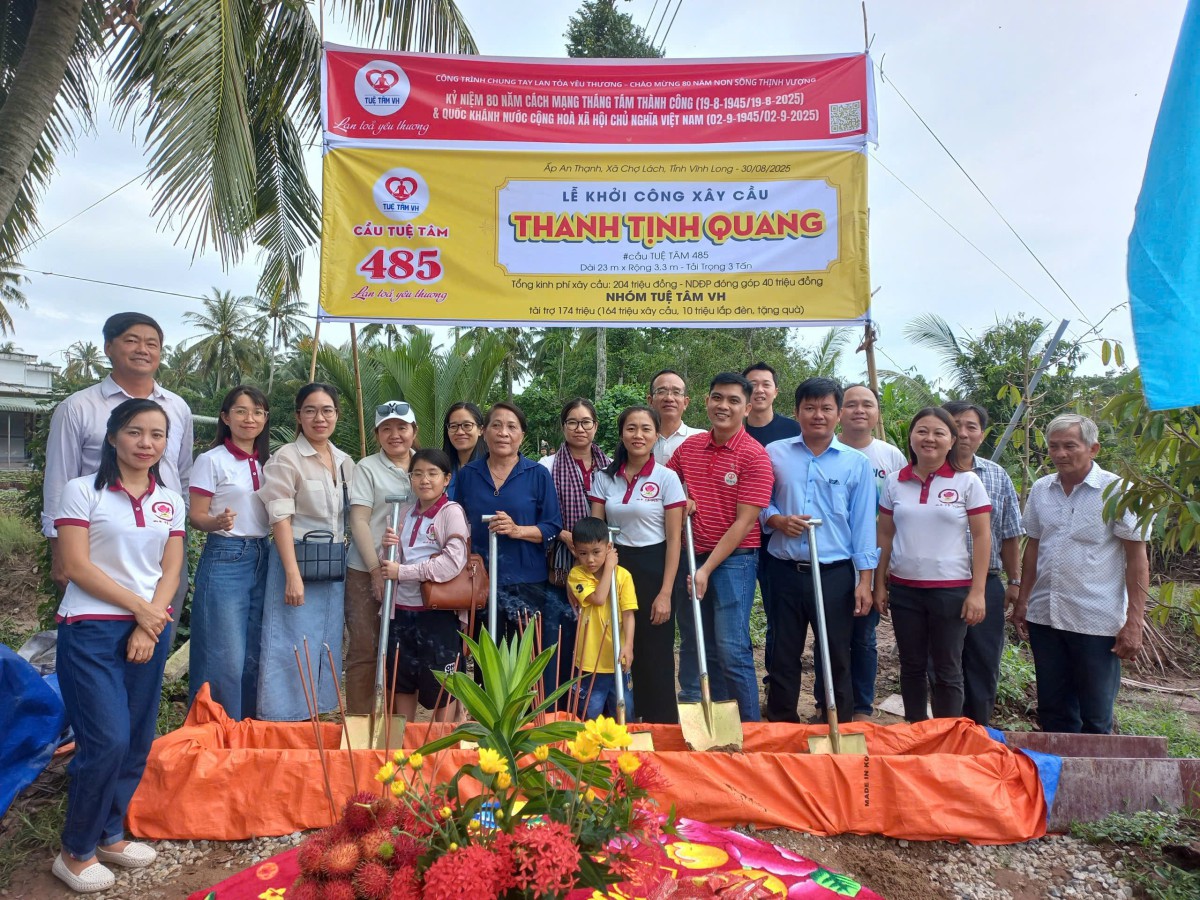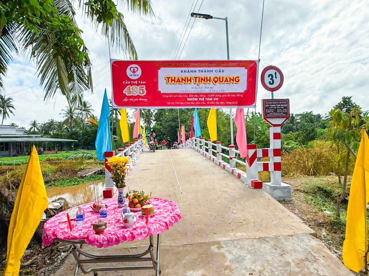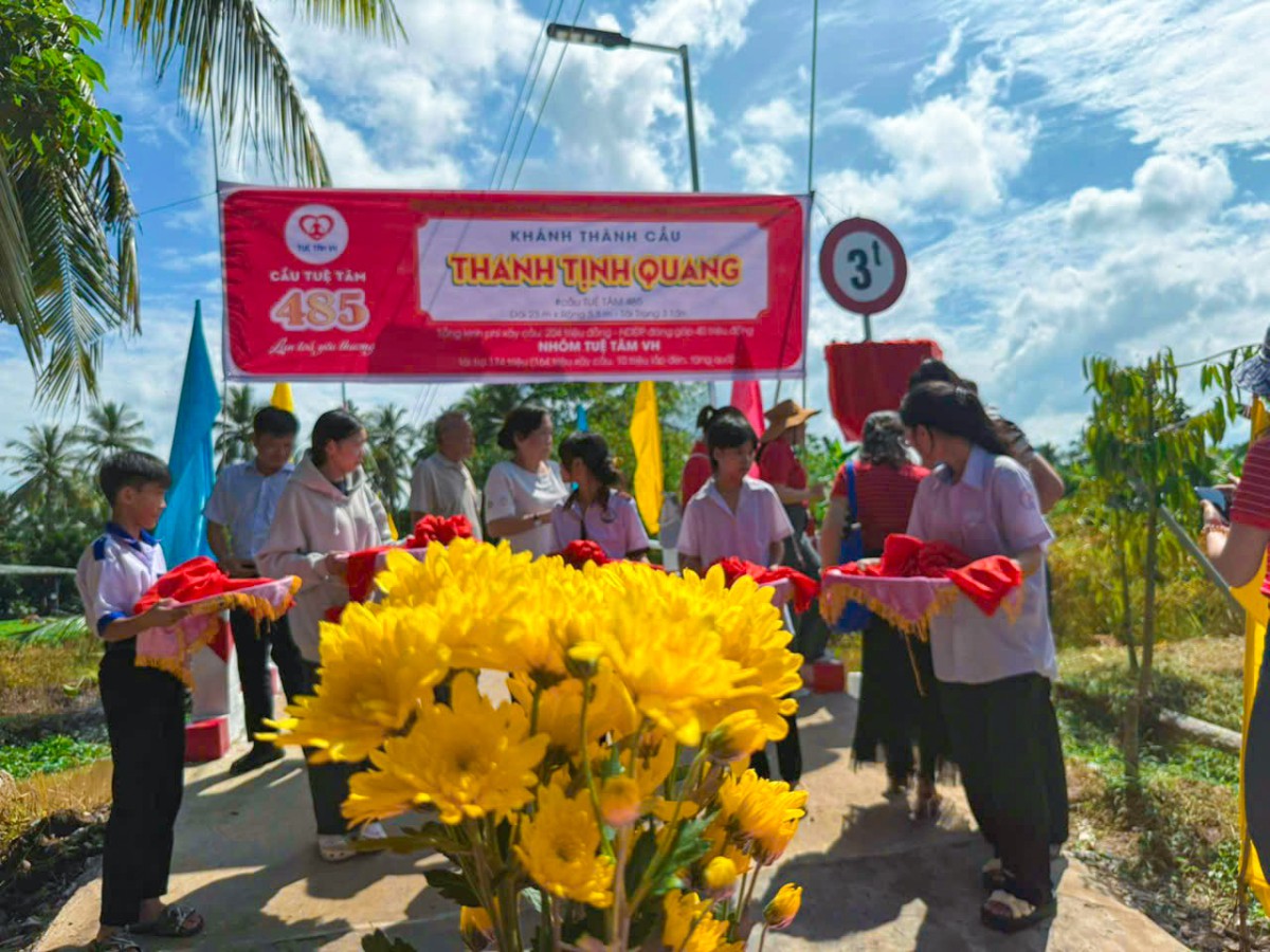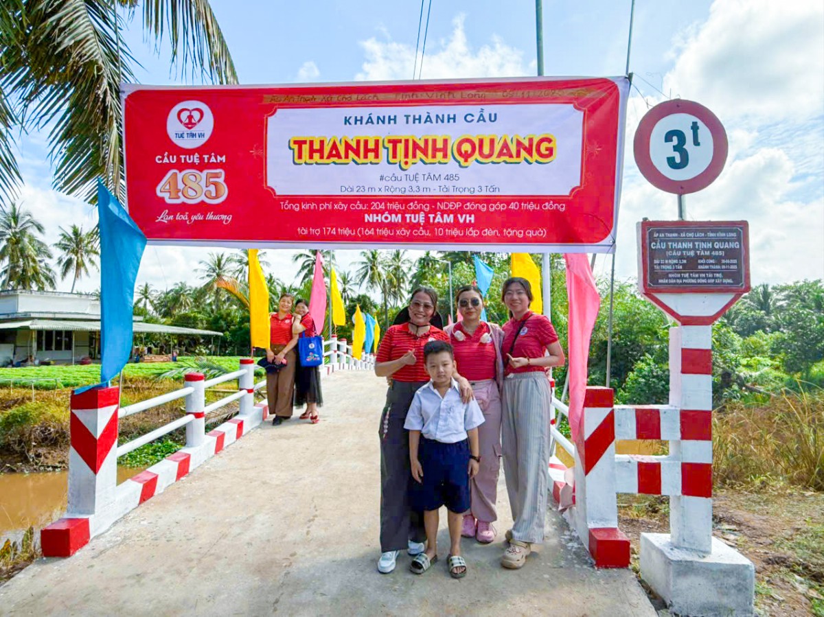 Sáng ngày 09/11/2025, tại ấp An Thạnh, xã Chợ Lách, tỉnh Vĩnh Long, không khí tưng bừng, rộn rã đã bao trùm khi bà con nơi đây hân hoan chào đón Lễ Khánh thành cầu Tuệ Tâm 485 – Thanh Tịnh Quang. Công trình là kết quả tuyệt vời của lòng nhân ái, là hiện thực hóa niềm mong mỏi bấy lâu của hơn 313 hộ dân sinh sống tại tuyến đường huyết mạch nối liền 4 ấp An Thạch – Tân Phú – Phú Thới – An Quy.