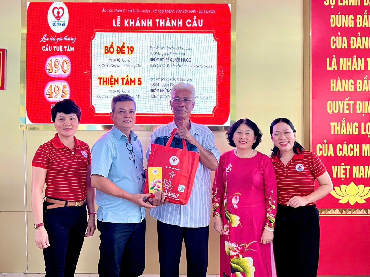 Công trình này là cây cầu thứ 19 của Nhà tài trợ – Nhóm Bồ Đề Quyến Thuộc, cầu đầu tiên mà Nhóm Tuệ Tâm VH kết nối các mạnh thường quân tài trợ cho xã Hòa Khánh, và là cầu Tuệ Tâm thứ 53 trên địa bàn tỉnh Tây Ninh. Sự hiện diện liên tục và bền bỉ ấy cho thấy một hành trình thiện nguyện được duy trì bằng lựa chọn có ý thức, bằng tấm lòng yêu thương của các Mạnh thường quân, kiên định với những giá trị âm thầm nhưng lâu dài.