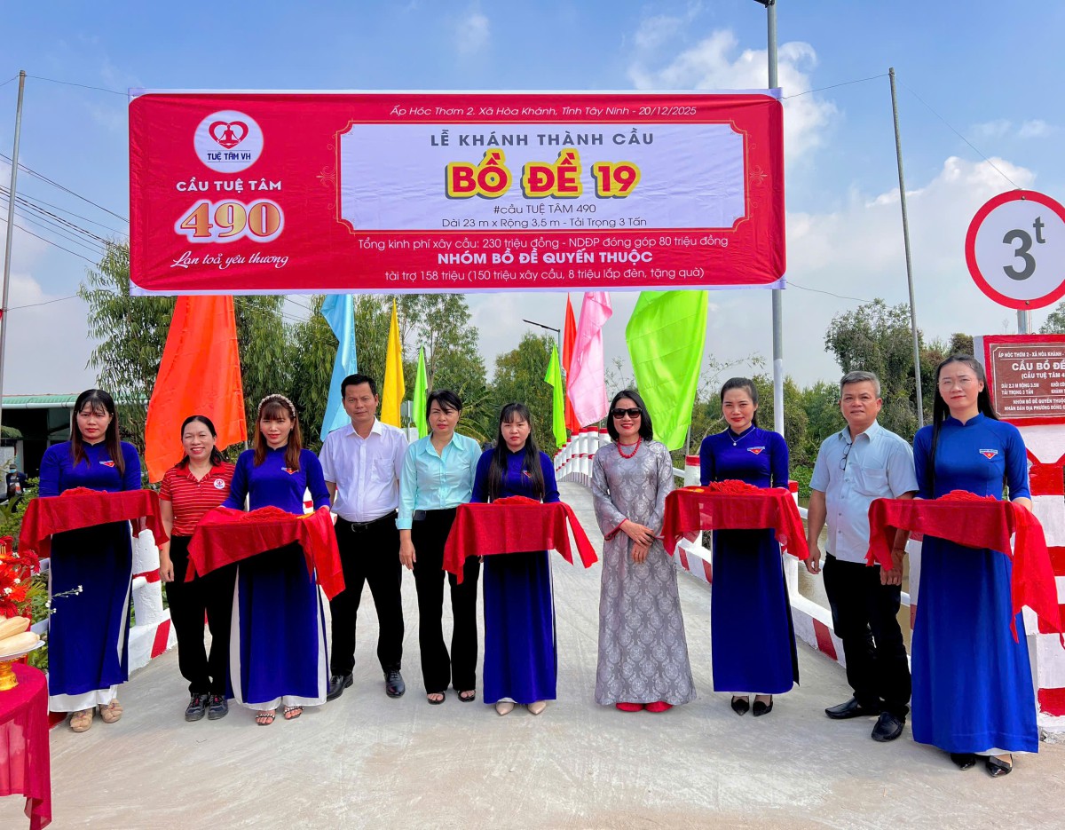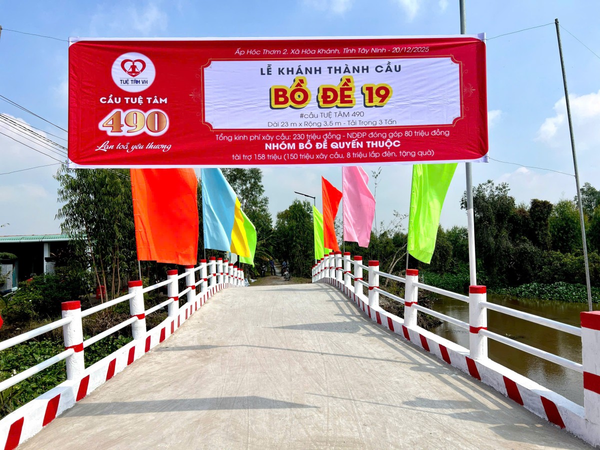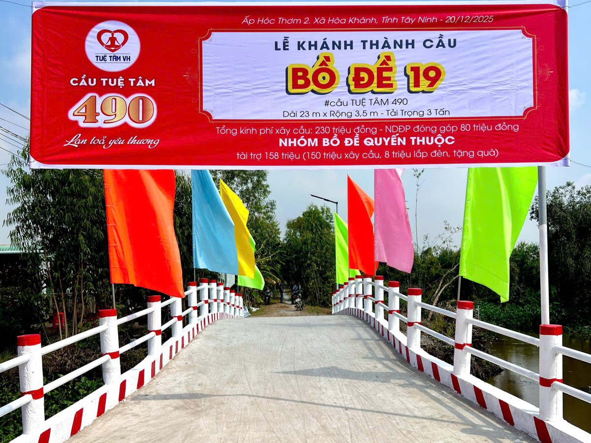 Ngày 21/12/2025, tại ấp Hóc Thơm 2, xã Hòa Khánh, tỉnh Tây Ninh, lễ khánh thành cầu Bồ Đề 19 (cầu Tuệ Tâm 490) diễn ra trong bầu không khí hân hoan và lắng đọng. Đây là thời điểm những ngày cuối năm 2025. Giữa khoảnh khắc chuyển mình ấy của đất trời, một cây cầu mới được hoàn thiện và đưa vào sử dụng, như một nhịp nối mang nhiều tầng ý nghĩa cho cộng đồng địa phương.