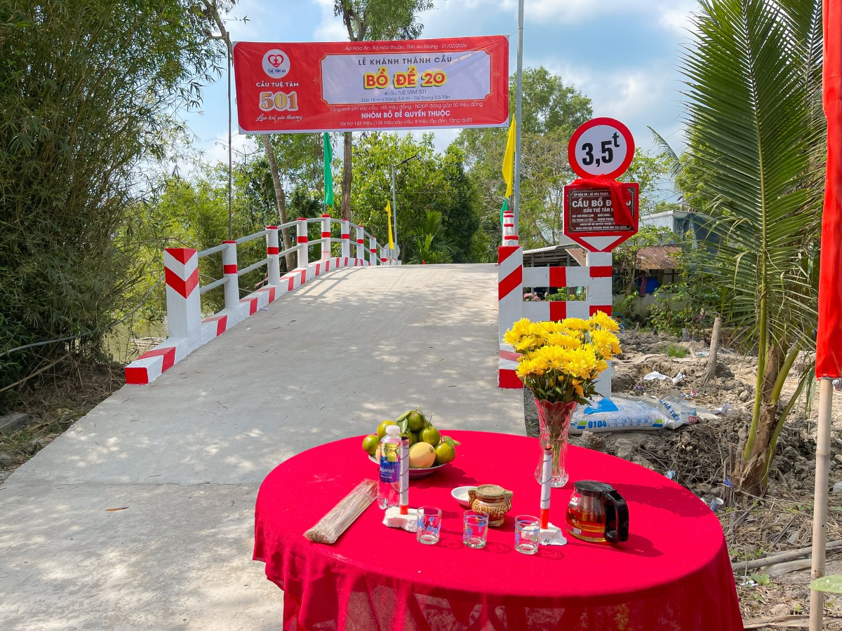 Trong không khí hân hoan, ấm áp nghĩa tình, ngày 01/02/2026 sau hơn hai tháng thi công khẩn trương và đầy trách nhiệm, cầu Bồ Đề 20 (cầu Tuệ Tâm 501) tại tỉnh An Giang đã chính thức được khánh thành, đánh dấu thêm một cột mốc ý nghĩa trên hành trình gieo duyên lành, lan tỏa yêu thương của nhóm Bồ Đề Quyến Thuộc dành cho bà con vùng quê còn nhiều khó khăn.