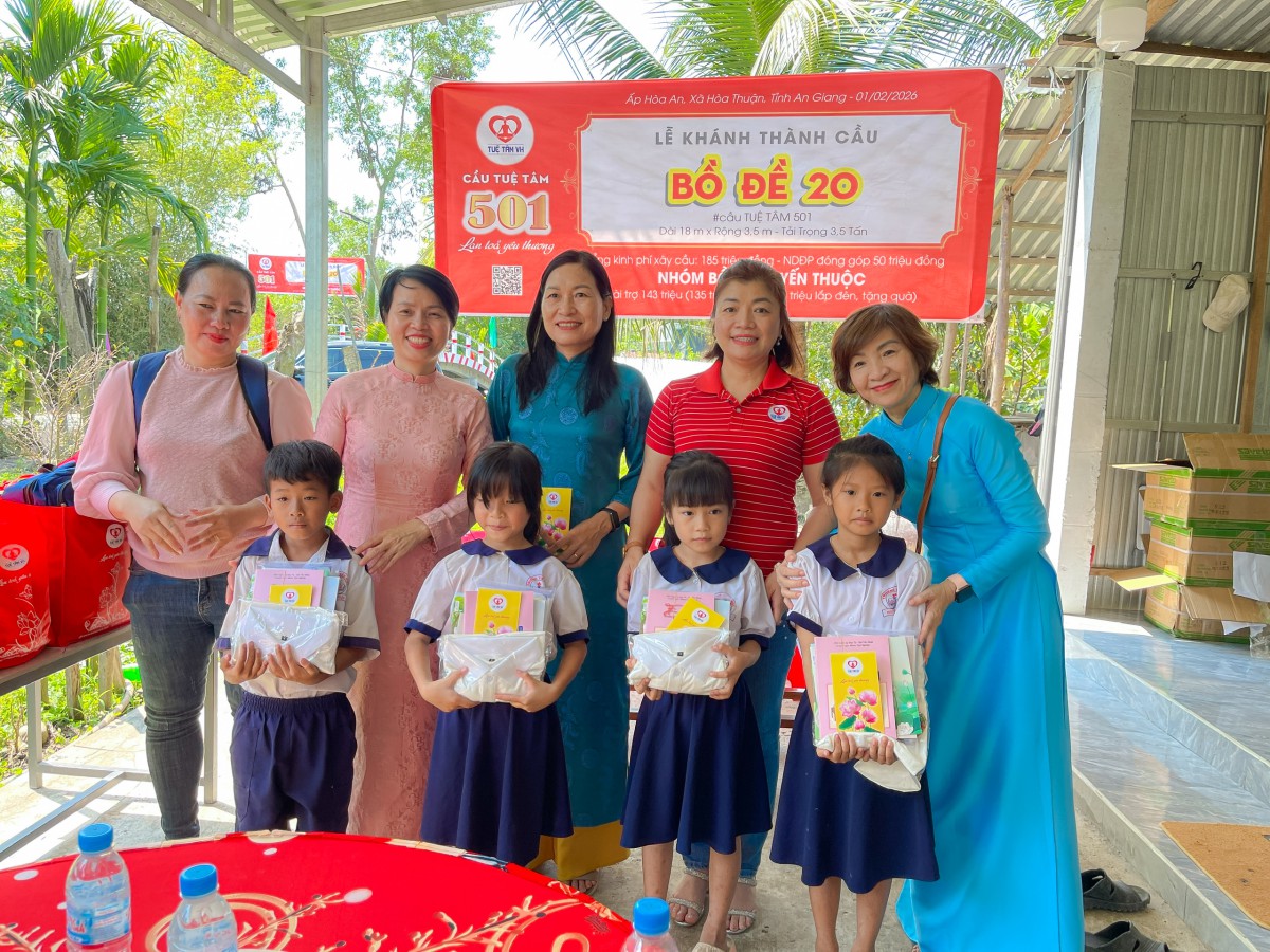 Thấu hiểu nỗi lo canh cánh ấy, trong những chuyến đi về vùng đồng bằng sông Cửu Long, tận mắt chứng kiến cảnh người dân vất vả mưu sinh, vận chuyển nông sản khó khăn, trẻ em đến trường phải đi đường vòng xa xôi, nhóm Bồ Đề Quyến Thuộc đã phát tâm tài trợ xây dựng cây cầu tình thương mang tên Bồ Đề 20 (cầu Tuệ Tâm 501), trao tặng bà con món quà thiết thực và bền vững.