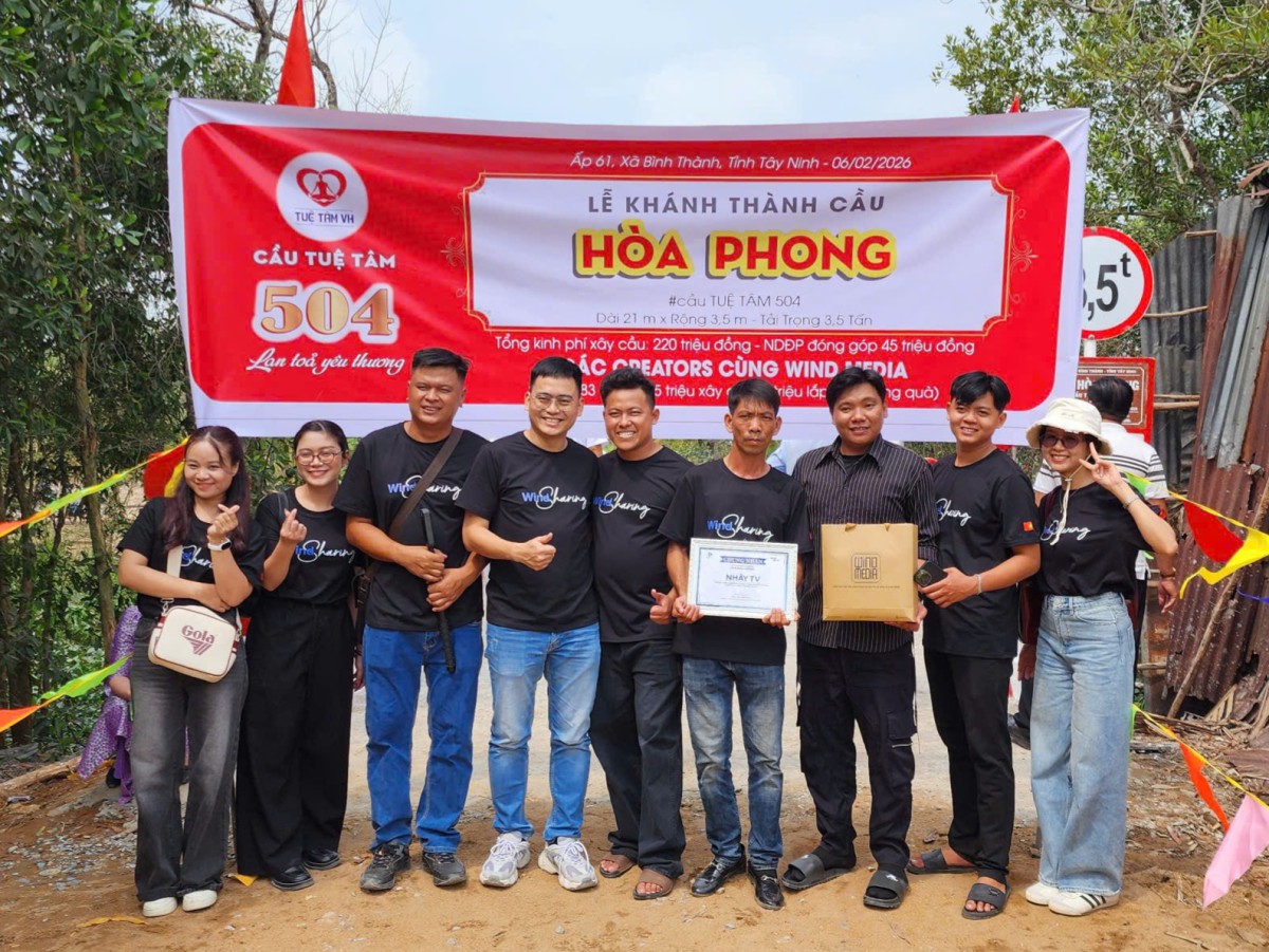 Xin chúc quý nhà tài trợ Các Creators cùng Wind Media luôn dồi dào năng lượng tích cực, giữ trọn ngọn lửa nghề, tiếp tục lan tỏa thật nhiều câu chuyện đẹp và những điều tử tế đến với cộng đồng. Mong rằng trên mỗi hành trình phía trước, quý nhà tài trợ sẽ luôn gặp nhiều niềm vui, nhiều may mắn và thêm thật nhiều nhịp cầu yêu thương được nối dài – nhẹ nhàng, bền bỉ và đầy ấm áp như chính tinh thần mà quý vị đã trao gửi tại cầu Hòa Phong (cầu Tuệ Tâm 504) hôm nay.