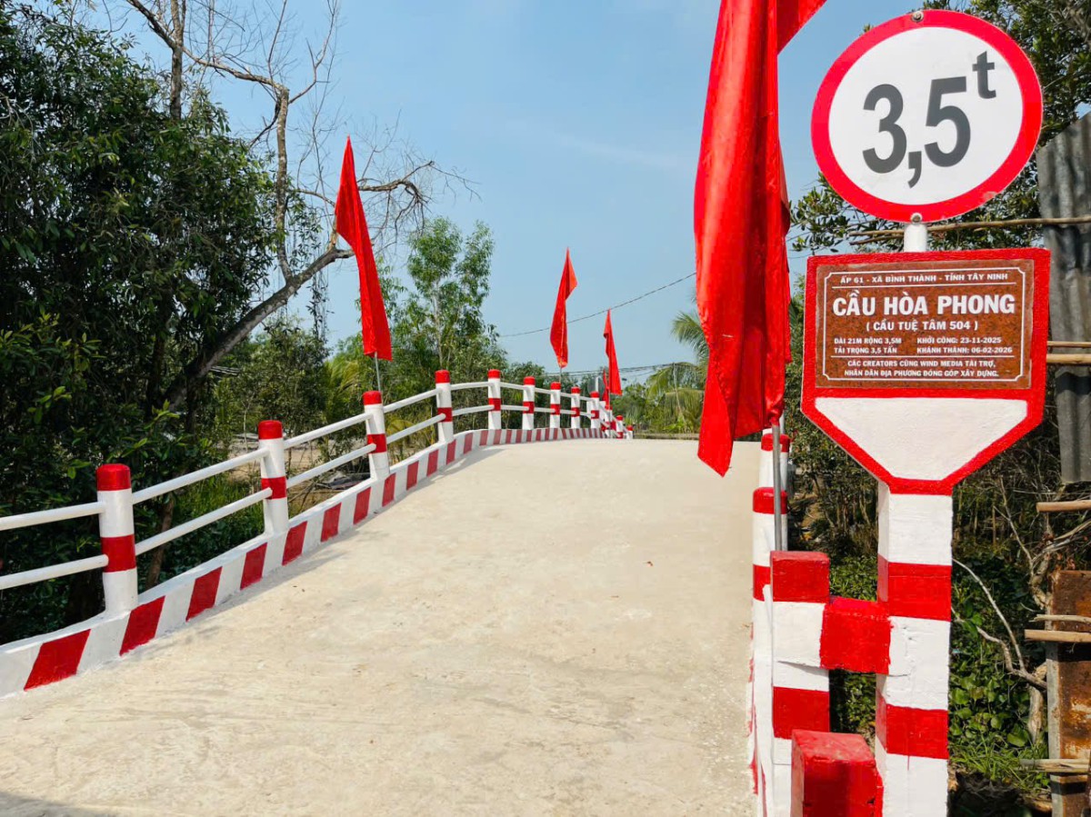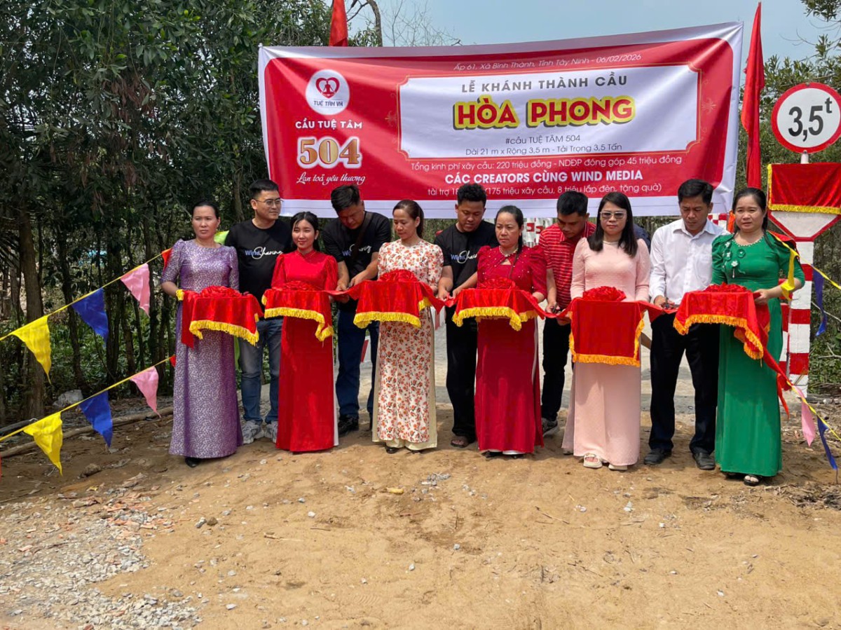 Đặc biệt, nhịp cầu yêu thương Hòa Phong (cầu Tuệ Tâm 504) còn mang ý nghĩa rất riêng khi đây là cây cầu thứ 03 của Các Creators cùng Wind Media dành tặng bà con miền Tây , cây cầu thứ 04 nhóm Tuệ Tâm VH kết nối các nhà tài trợ hỗ trợ cho xã Bình Thành, và là cây cầu thứ 76 nhóm kết nối tài trợ cho tỉnh Tây Ninh. Mỗi con số là một dấu mốc của hành trình yêu thương bền bỉ, nơi những tấm lòng thiện nguyện đã chọn lắng nghe, chọn thấu hiểu và chọn ở lại cùng bà con bằng những việc làm thiết thực. Giữa khoảnh khắc xuân đang gõ cửa, những phần quà hôm nay và nhịp cầu Hòa Phong vững chãi chính là lời chúc năm mới bình an, đủ đầy được gửi trao bằng tất cả nghĩa tình.