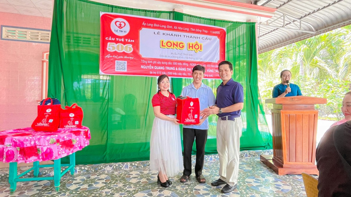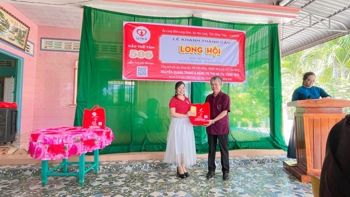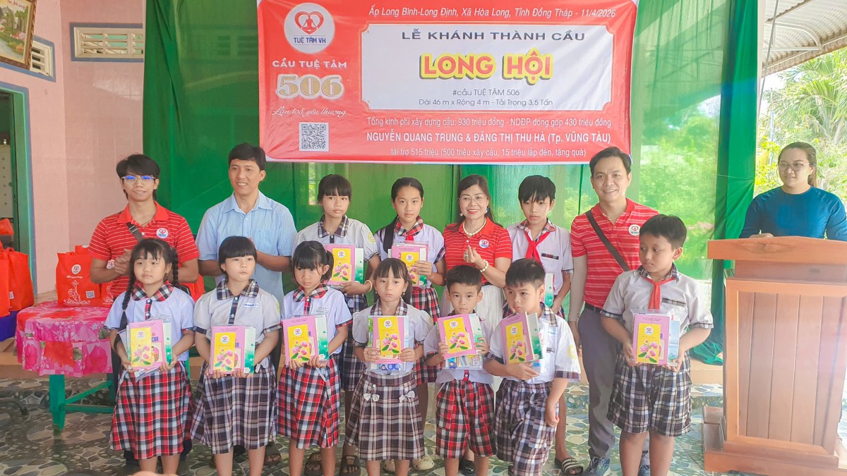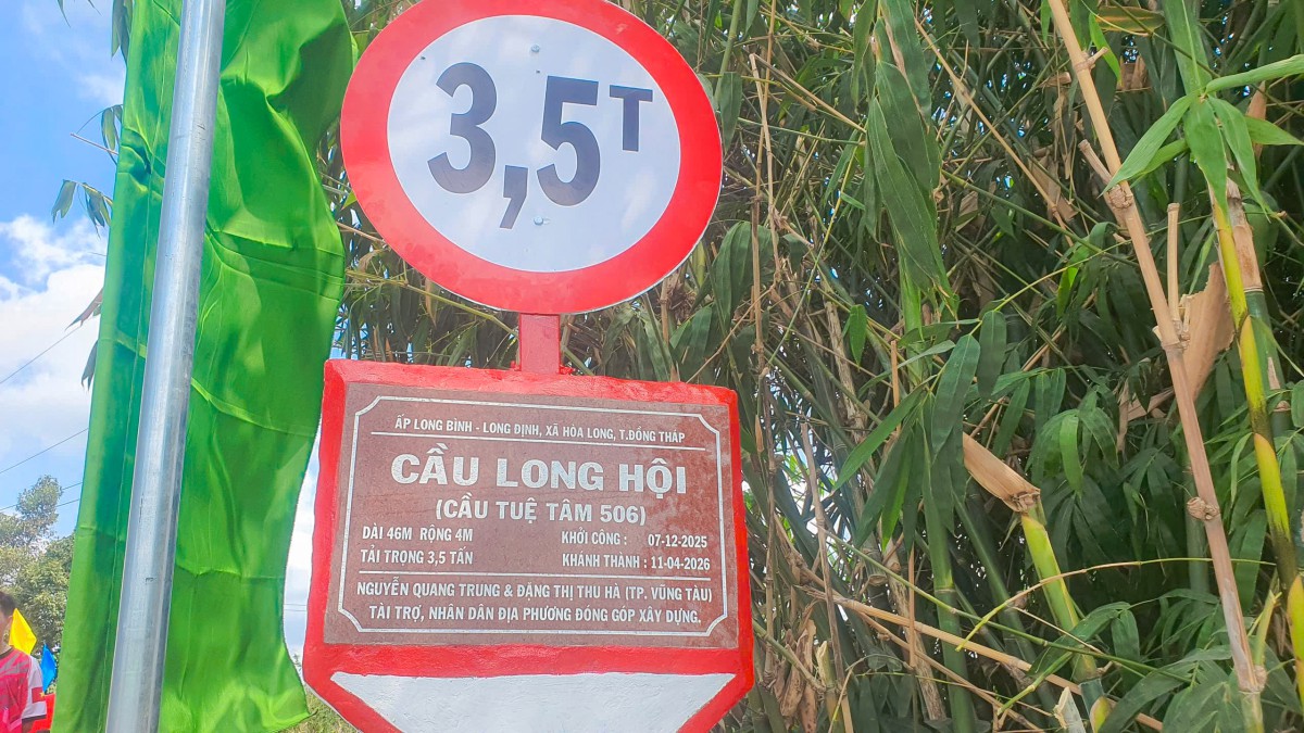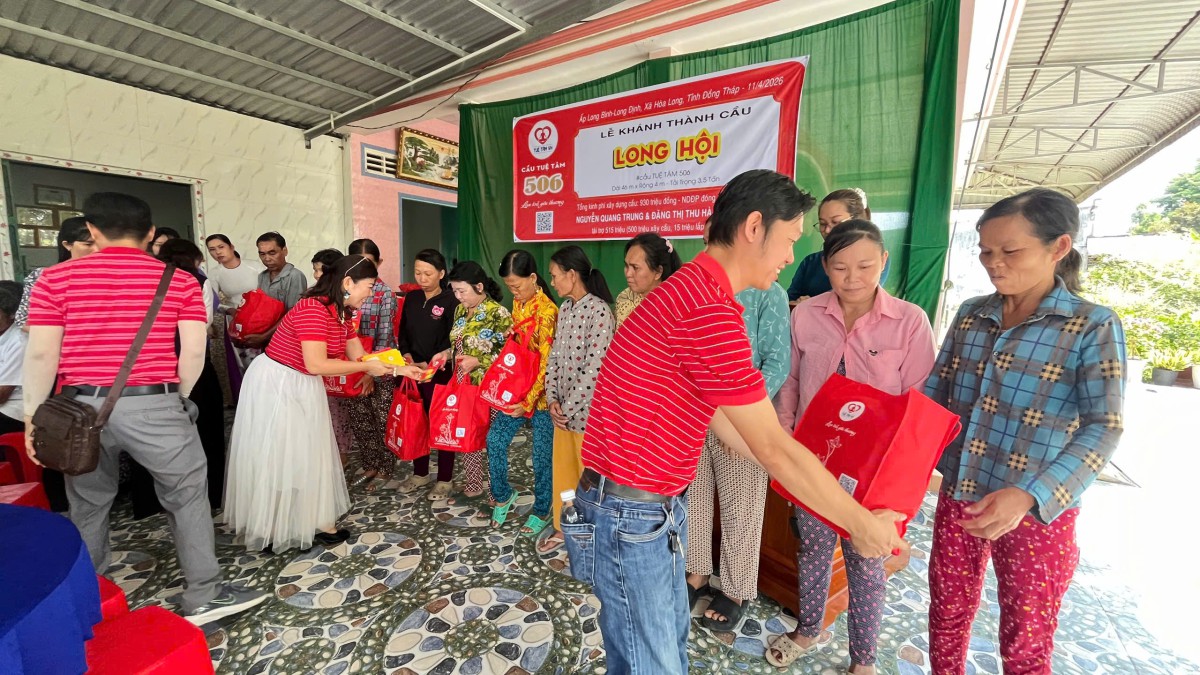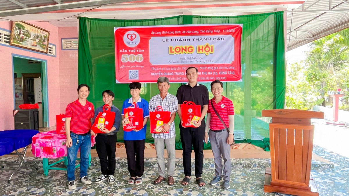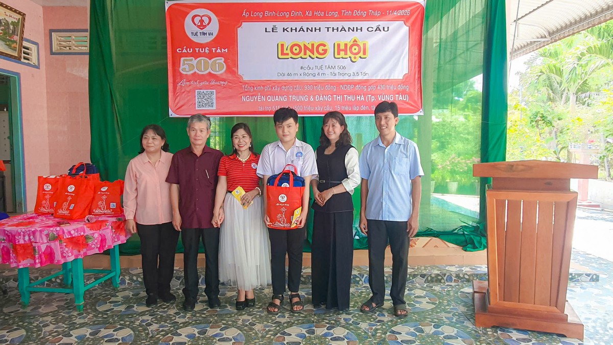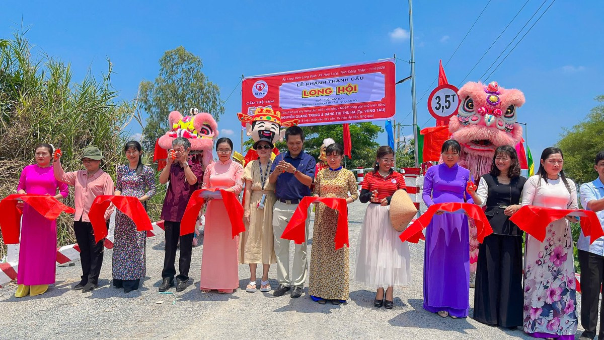 Ngày 10/04/2026, tại ấp Long Bình, xã Hòa Long, tỉnh Đồng Tháp, niềm vui hiện rõ trên từng gương mặt của bà con khi cây cầu Long Hội (cầu Tuệ Tâm 506) chính thức hoàn thành và đưa vào sử dụng. Giữa miền quê còn nhiều vất vả, cây cầu mới hiện lên vững chãi như một món quà đầy yêu thương, mở ra một hành trình đi lại an toàn, thuận tiện và thắp lên thêm nhiều hy vọng cho cuộc sống nơi đây.