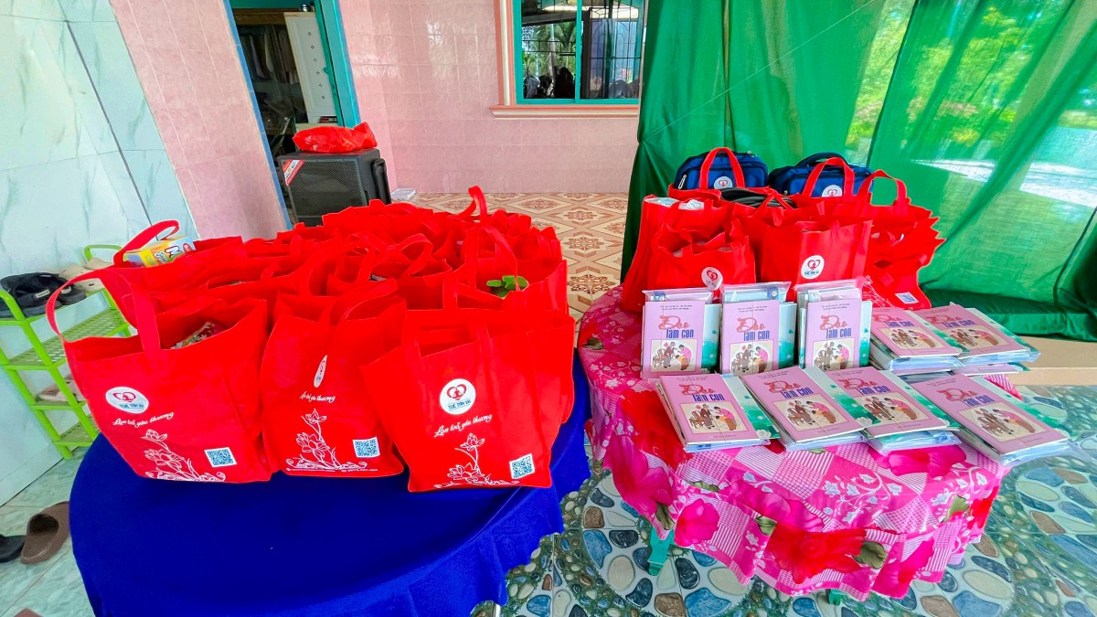 Buổi lễ khánh thành diễn ra trong không khí rộn ràng, ấm áp yêu thương, các em học sinh và bà con háo hức đến từ sáng sớm. Niềm vui ấy càng thêm trọn vẹn hơn khi những phần quà ý nghĩa được Gia đình Anh chị Nguyễn Quang Trung – Đặng Thị Thu Hà (TP. Vũng Tàu) trao tận tay, cụ thể: