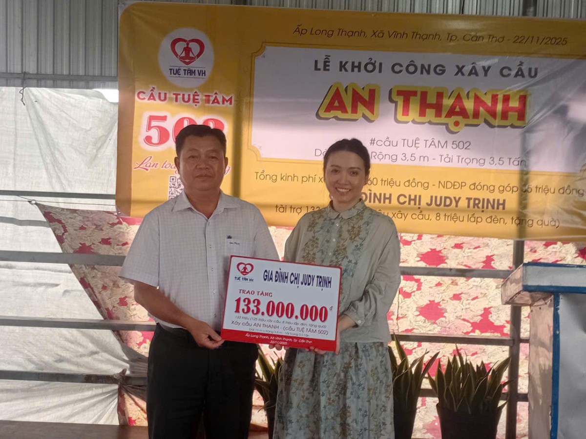 Xin được gửi lời tri ân sâu sắc đến Gia đình chị Judy Trịnh – nhà tài trợ thân quý, những người đã dành trọn tấm lòng hướng về bà con địa phương. Sự đồng hành đầy yêu thương và nghĩa tình của Chị Judy Trịnh cùng gia đình đã tiếp thêm sức mạnh giúp cây cầu mới được khởi công, thắp lên niềm hy vọng về một tương lai an toàn, thuận lợi và tươi sáng hơn cho biết bao hộ gia đình nơi đây. Tấm lòng của quý vị thật sự là một món quà vô giá đối với bà con xã Vĩnh Thạnh, TP Cần Thơ.