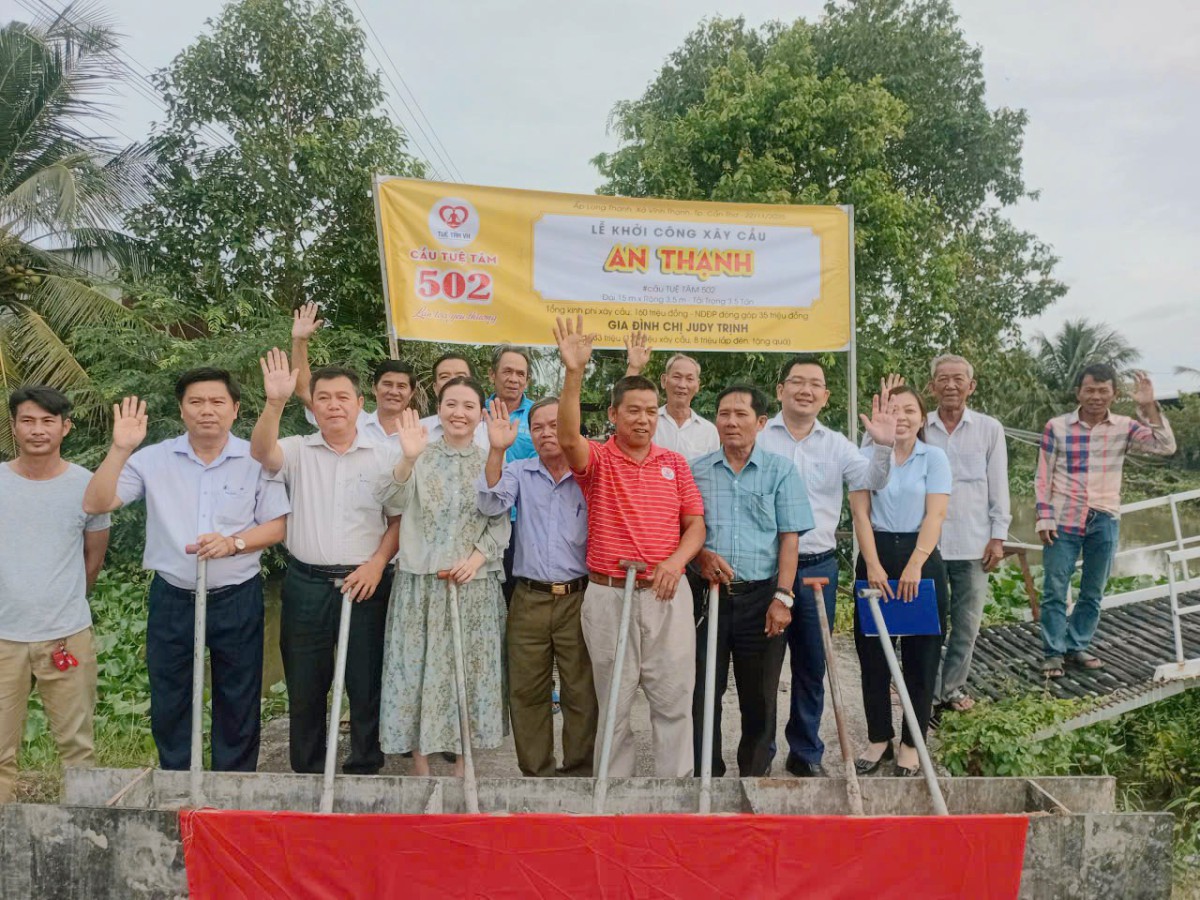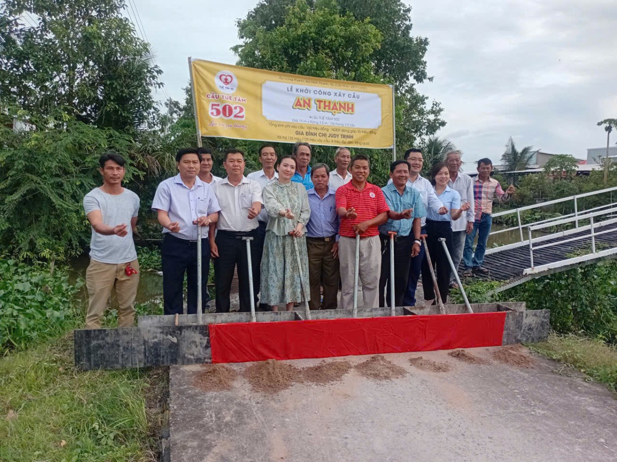 Và rồi sáng thứ 7 ngày 22/11/2025, nắng thật ấm, sau những cơn mưa kéo dài, buổi lễ khởi công cầu An Thạnh (cầu Tuệ Tâm 502) đã diễn ra thật ấm áp và tràn ngập yêu thương. Cầu An Thạnh (cầu Tuệ Tâm 502) được xây mới với chiều dài 15 mét, rộng 3.5 mét và tải trọng 3.5 tấn. Tổng kinh phí xây dựng cầu là 160 triệu, trong đó chính quyền địa phương cùng bà con đã vận động quyên góp được 35 triệu đồng, phần còn lại 125 triệu đồng do Gia đình chị Judy Trịnh tài trợ toàn bộ.