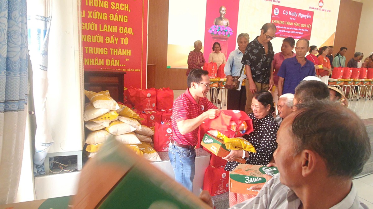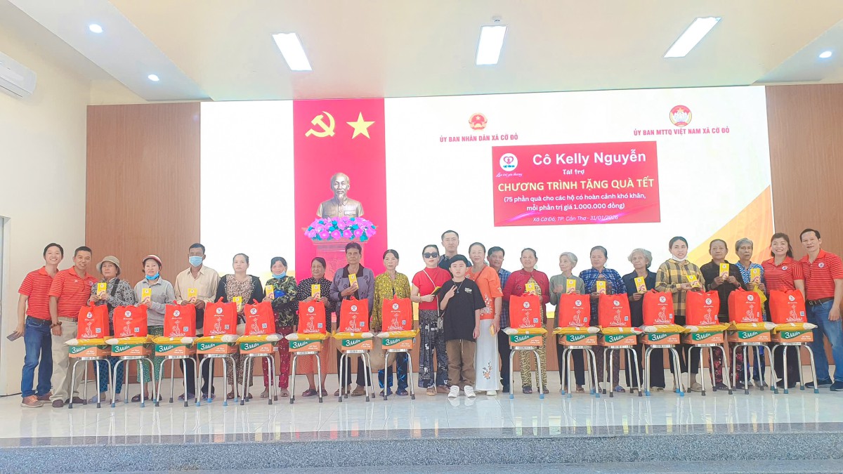 Trong không khí nghĩa tình ấy, 75 phần quà Tết được Gia đình cô Kelly Nguyễn chuẩn bị chu đáo đã lần lượt trao đến tay 75 hộ gia đình khó khăn. Mỗi phần quà tổng trị giá 1 triệu đồng được gửi trao đi bao gồm một bao thư tiền mặt trị giá 500.000 đồng, cùng phần quà hiện vật nhu yếu phẩm trị giá 500.000 đồng. Tổng gia trị các phần quà mà gia đình cô Kelly Nguyễn trao tặng là 75.000.000 đồng.