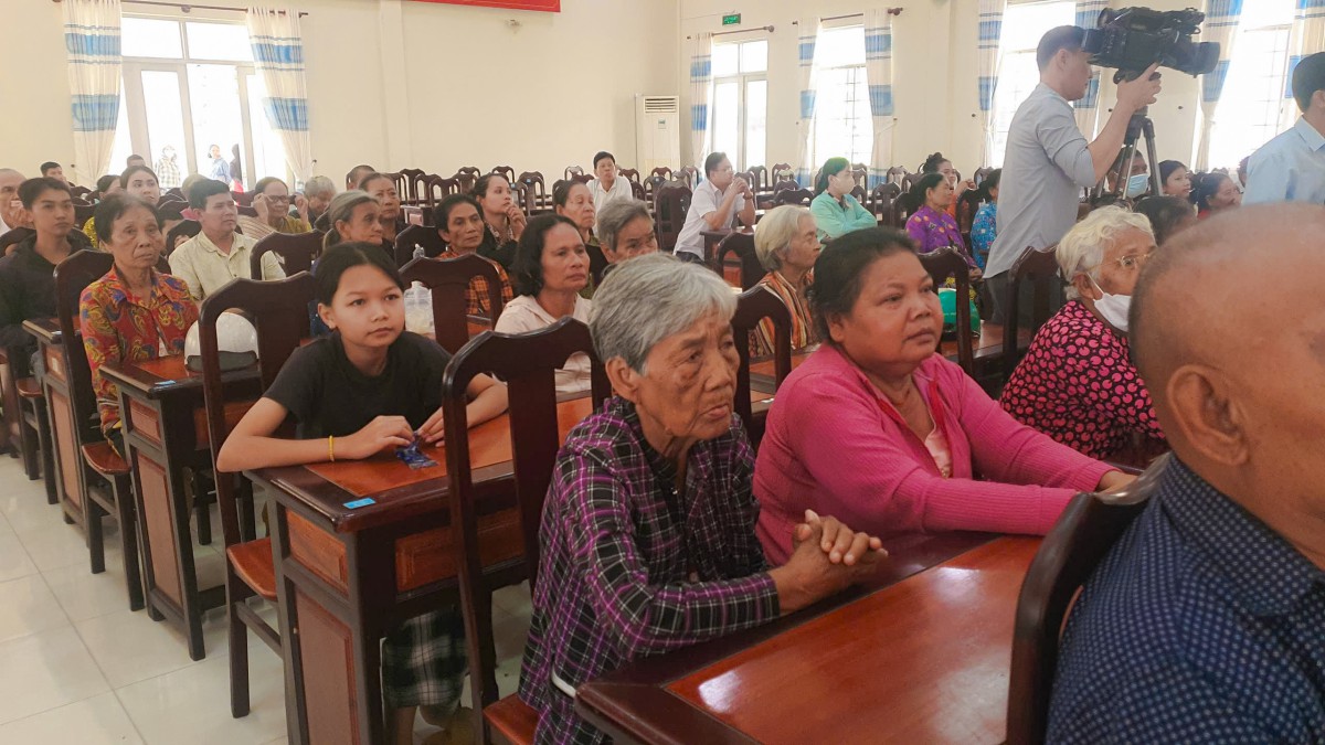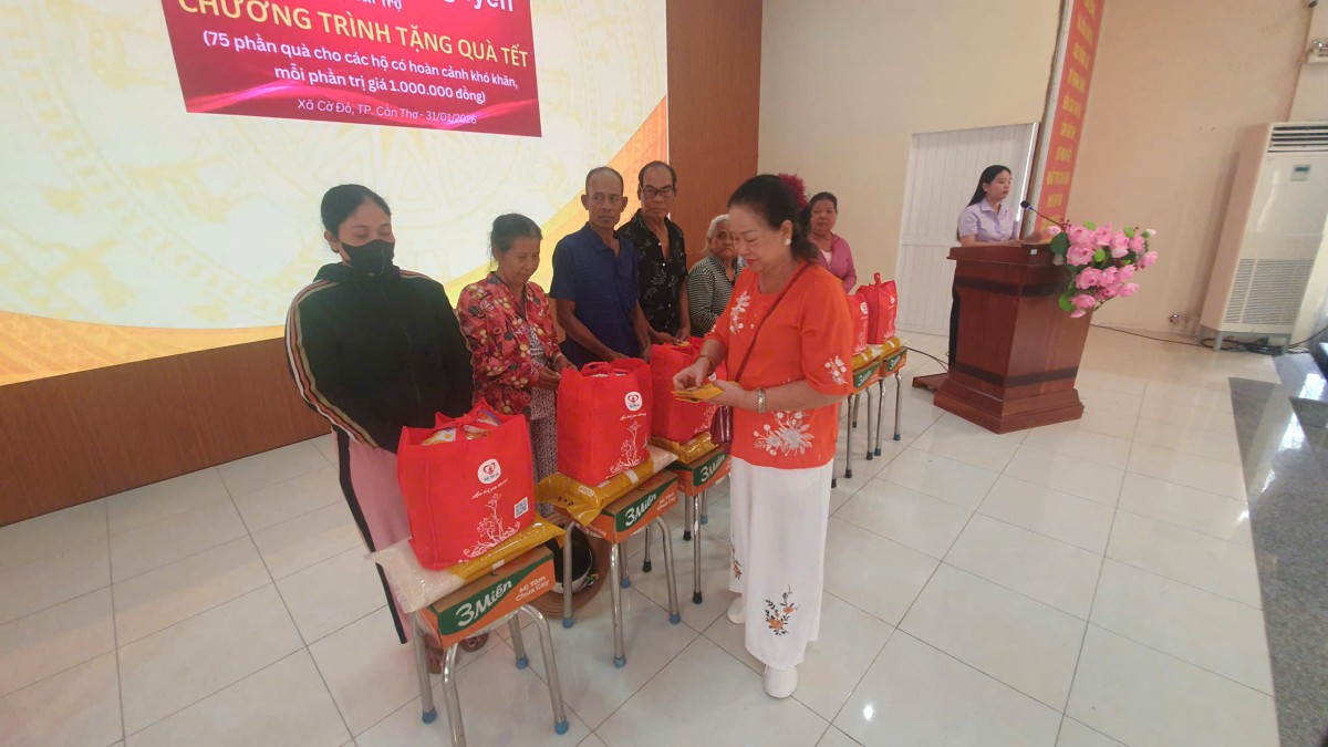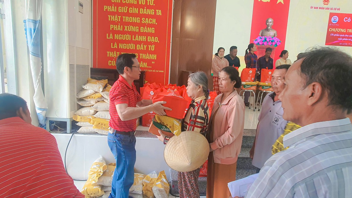 Khi những phần quà được trao đi, không gian hội trường UBND xã Cờ Đỏ như lặng lại trong một nhịp cảm xúc rất khẽ. Có cụ già ôm chặt túi quà vào lòng như giữ một điều gì quý lắm, có người mẹ cúi xuống mở túi quà ra nhìn rồi vội lau mắt, có những bàn tay chai sần nắm lấy tay người trao thật lâu không nói nên lời.