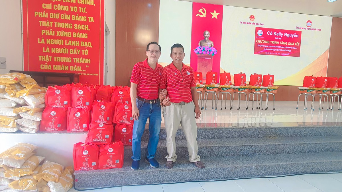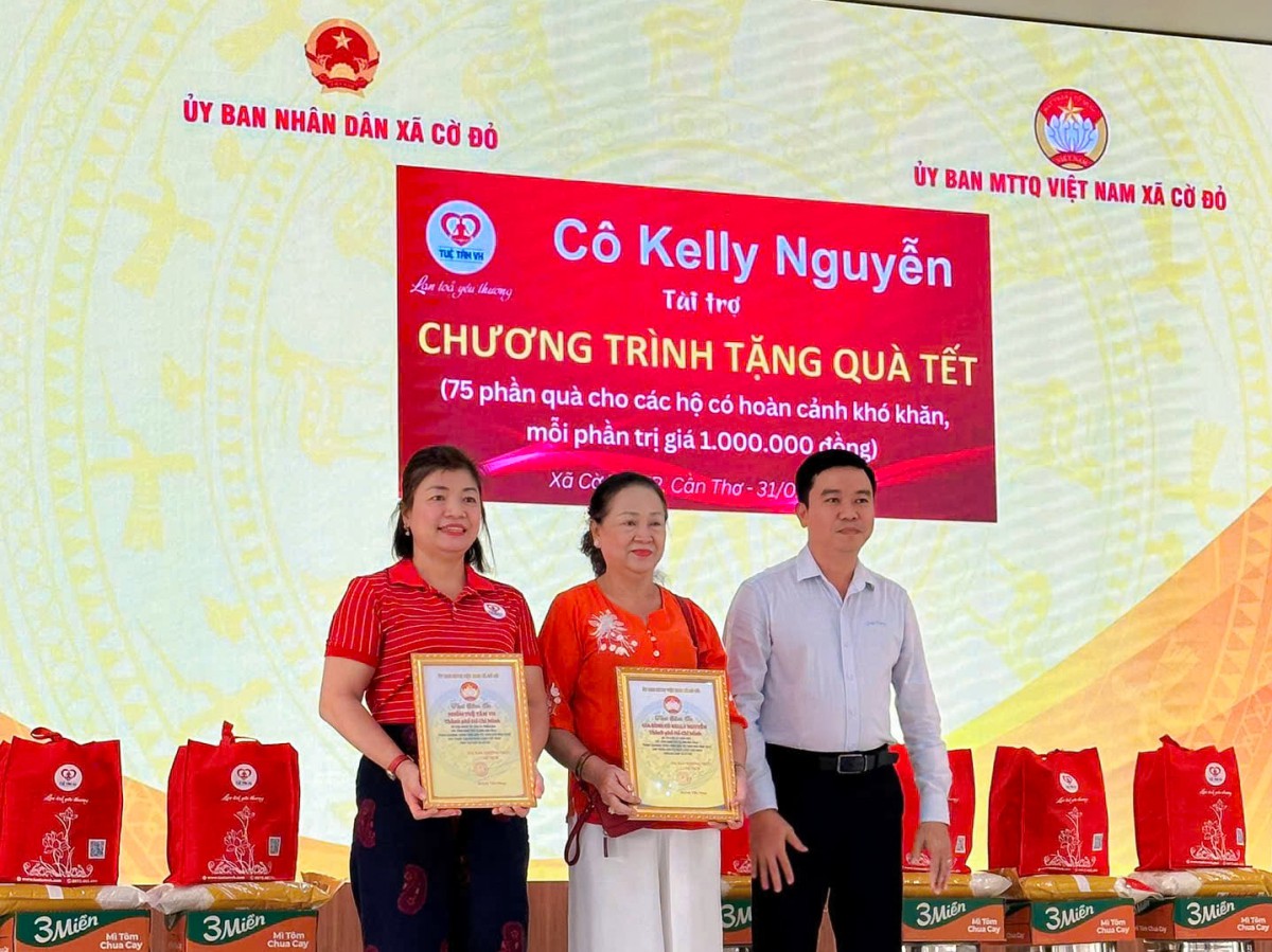 Đặc biệt, Gia đình cô Kelly Nguyễn đã nhiều lần sát cánh cùng nhóm Tuệ Tâm VH trên hành trình sẻ chia yêu thương về miền Tây. Sự gắn bó ấy không ồn ào, nhưng bền bỉ và chân thành, như một người thân lặng lẽ đứng phía sau, góp thêm ánh sáng cho những mùa xuân nơi xóm nhỏ. Nhờ những tấm lòng như thế, mỗi phần quà trao đi vừa đỡ đần vật chất, vừa nâng đỡ tinh thần, giúp bà con đón Tết đủ đầy hơn và giữ trọn niềm tin vào điều tử tế giữa cuộc sống còn nhiều nhọc nhằn.